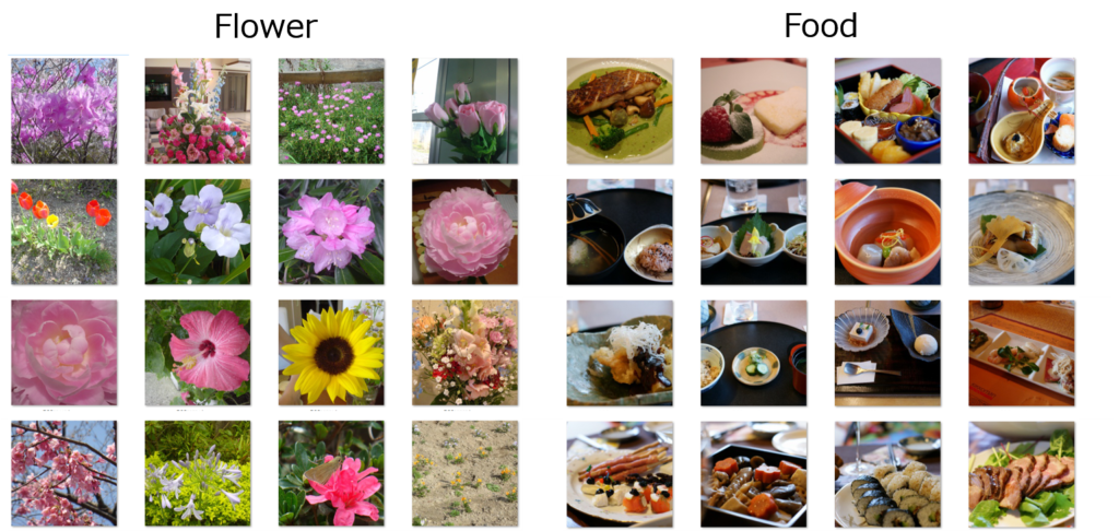 公開済みの花と食べ物の写真からなるFlower Food Datasetを加工して作成した、超解像実験用のコンパクトなデータセットです。